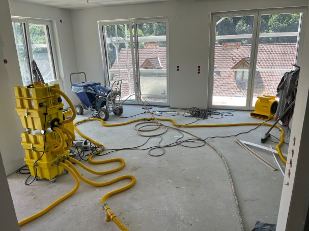 Die Neubautrocknung ist ein wichtiger Bestandteil jedes Bauprojekts. Restfeuchte in Baustoffen kann zu langfristigen Schäden führen und den Baufortschritt verzögern. Mit leistungsstarken Bautrocknern und abgestimmten Heizsystemen entziehen wir dem Gebäude zuverlässig überschüssige Feuchtigkeit.